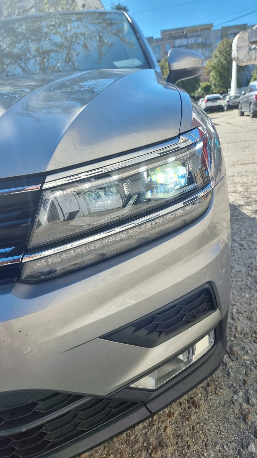 - Faruri Originale LED Matrix ce ofera o vizibilitate pe timp de noapte net superioara farurilor basic cu halogen. Aceste faruri sunt varianta de top montata de fabrica pe VW Tiguan generatia 2, si suporta functiile de cornering ( vireaza in functie de rotile autoturismului ), faza lunga automata si fiind Matrix au si optiunea de a decupa masinile din fata atunci cand faza lunga este pornita, oferind o vizibilitate foarte mare fara sa deranjeze participantii la trafic care se afla in fata masinii dumneavoastra.