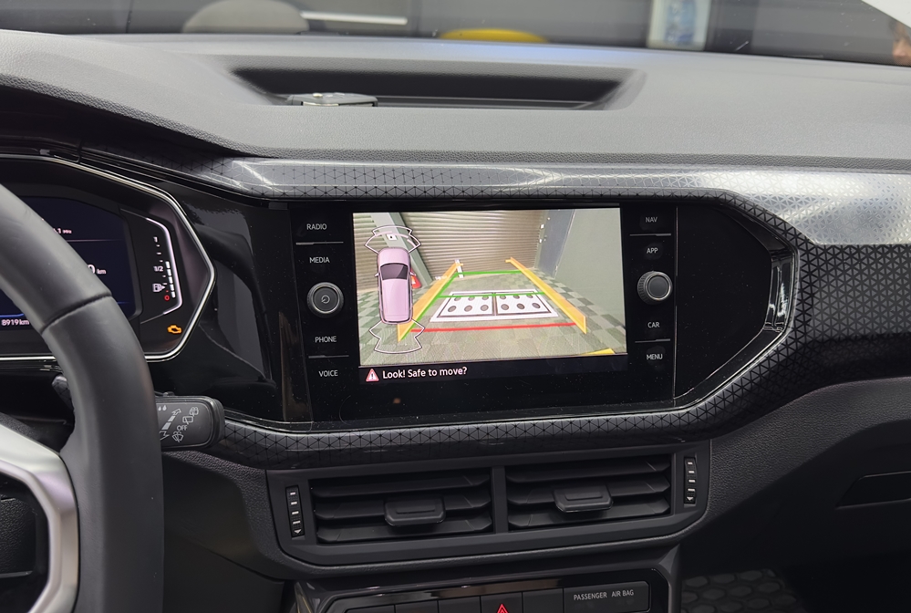 - Camera Spate Marsarier VW T Cross 2018 2019 2020 2021 2022 2023 2024 in manerul de deschidere care se activeaza atunci cand masina este in Marsarier ( sau se poate activa de la butonul de activare senzori parcare ) si va permite o vizibilitate ridicata atunci cand parcati sau mergeti cu spatele.