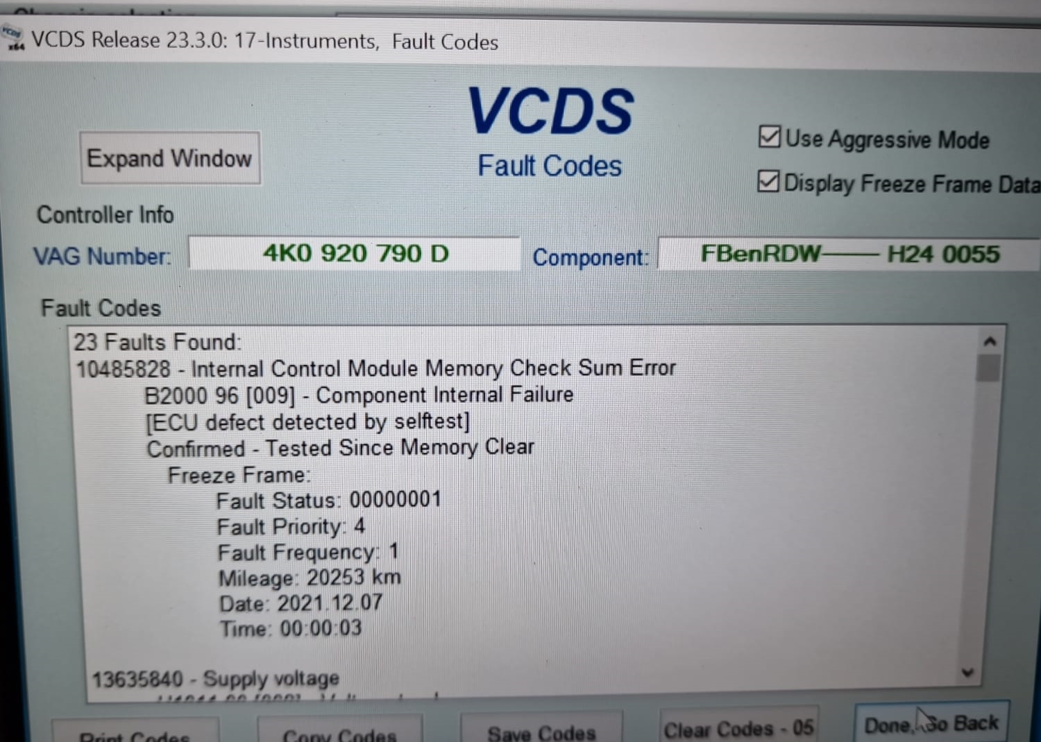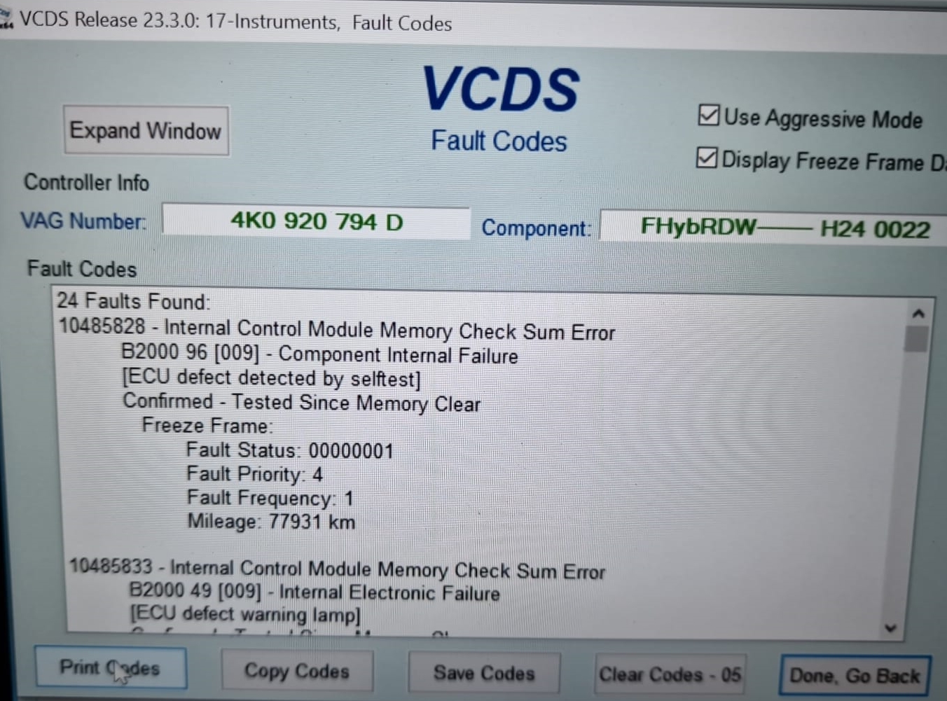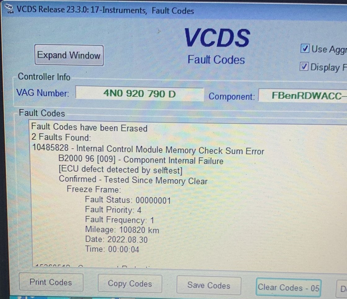 Instrument Cluster Error, workshop